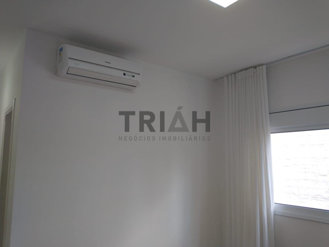Sala para dois ambientes com ar condicionado, interligado a varanda gourmet com churrasqueira e cozinha americana.