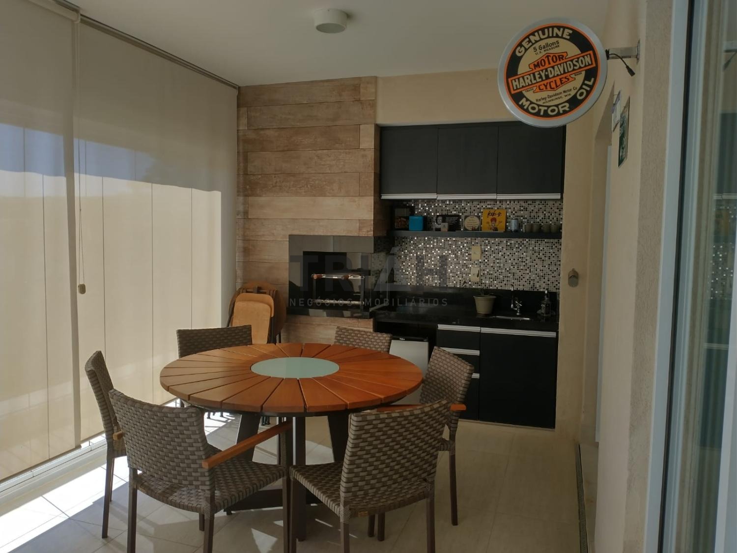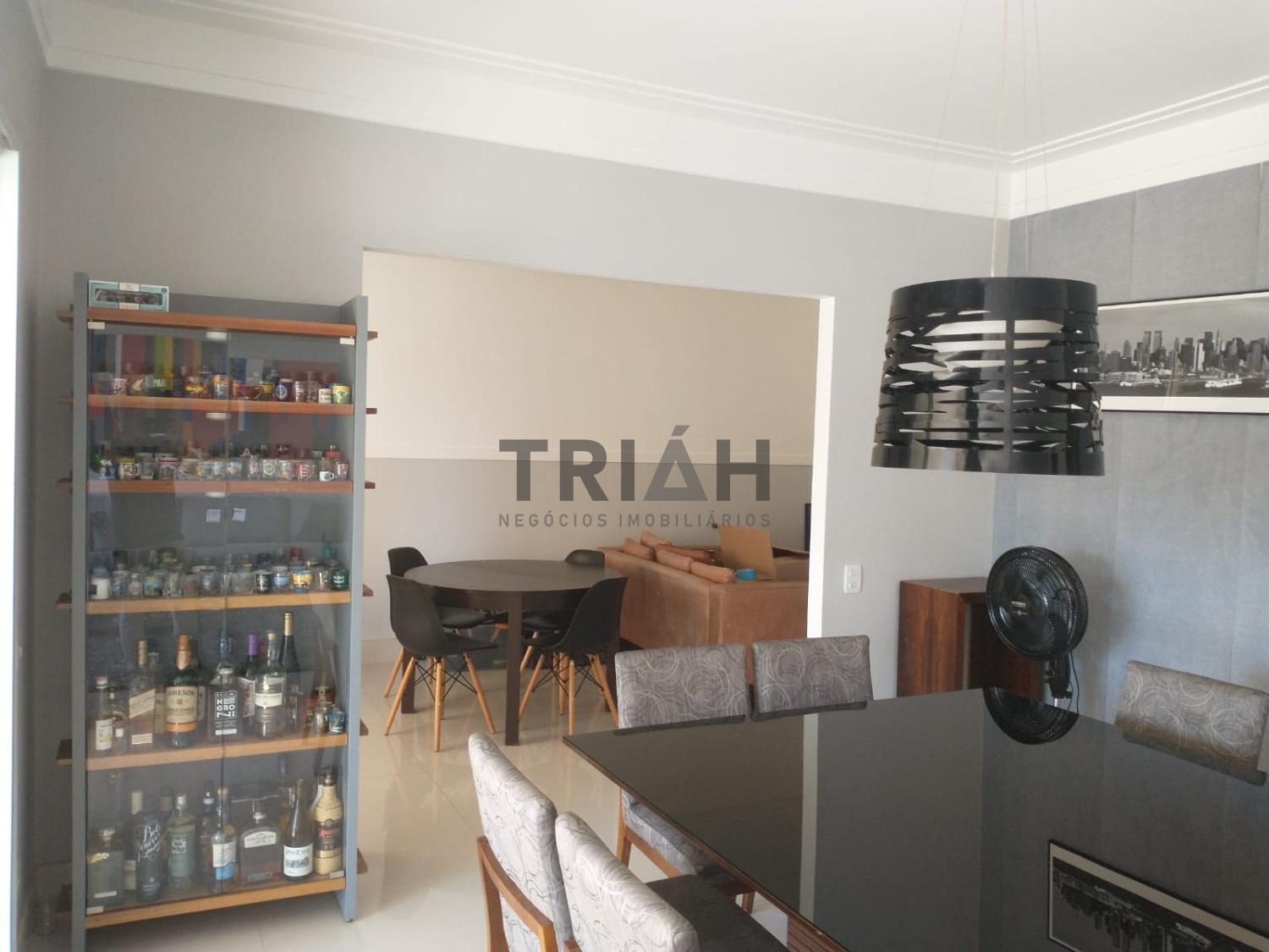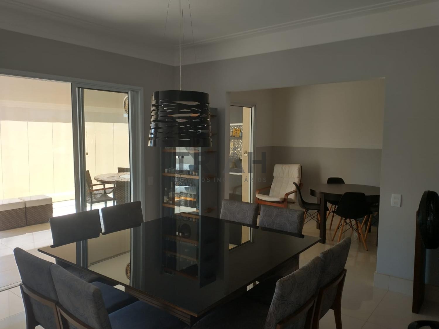 Sala de Tv, sala de estar e sala de jantar interligadas com a varanda gourmet com churrasqueira.