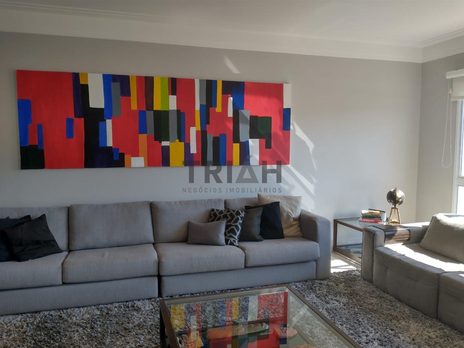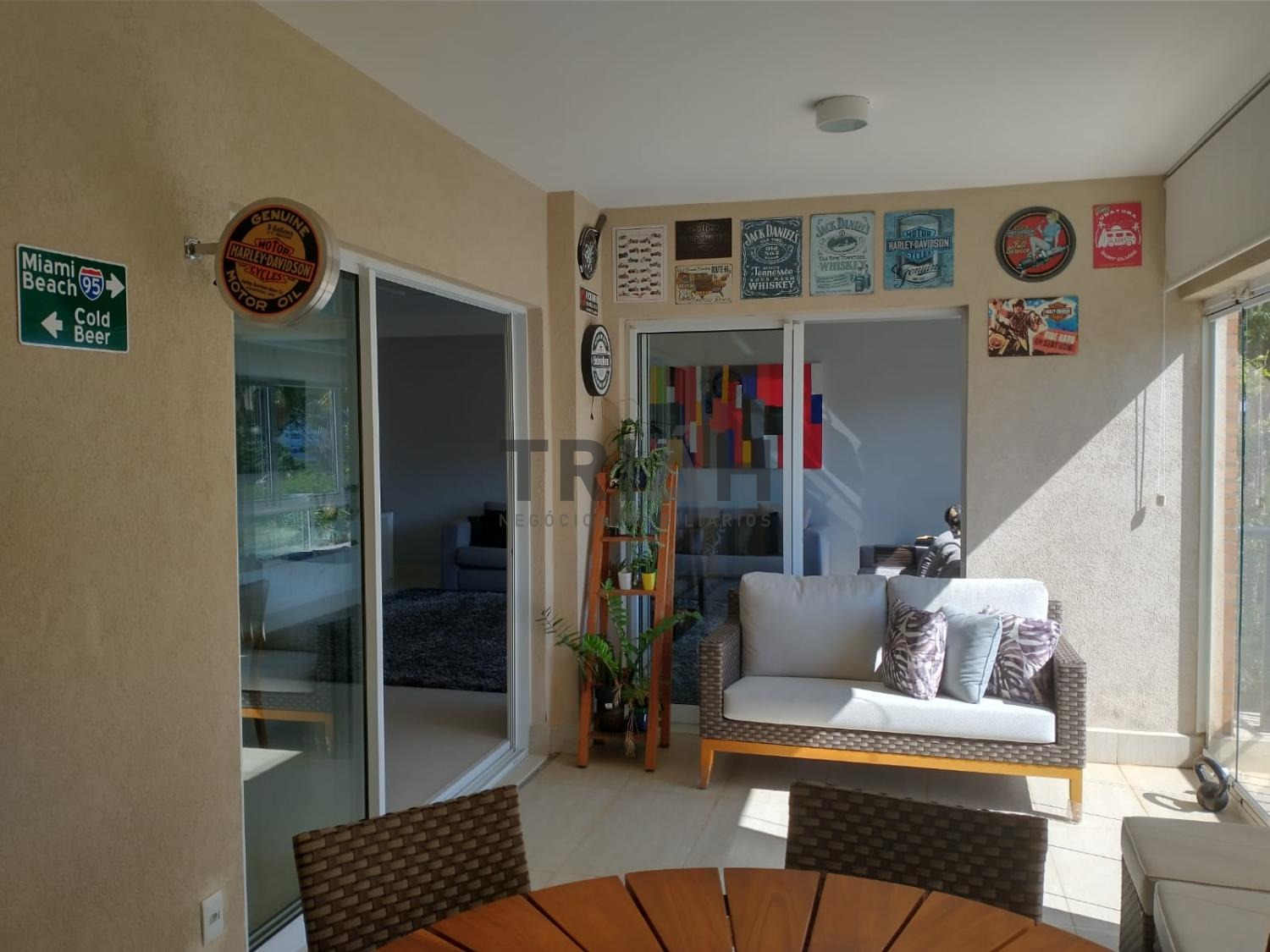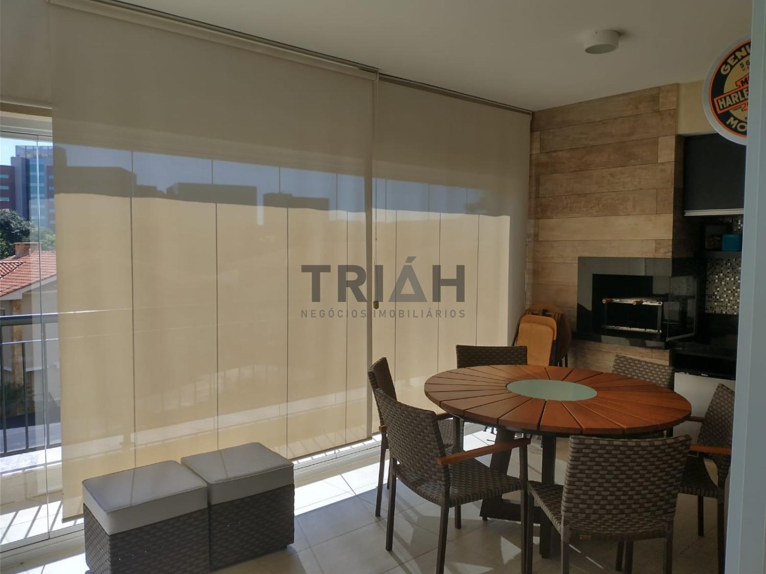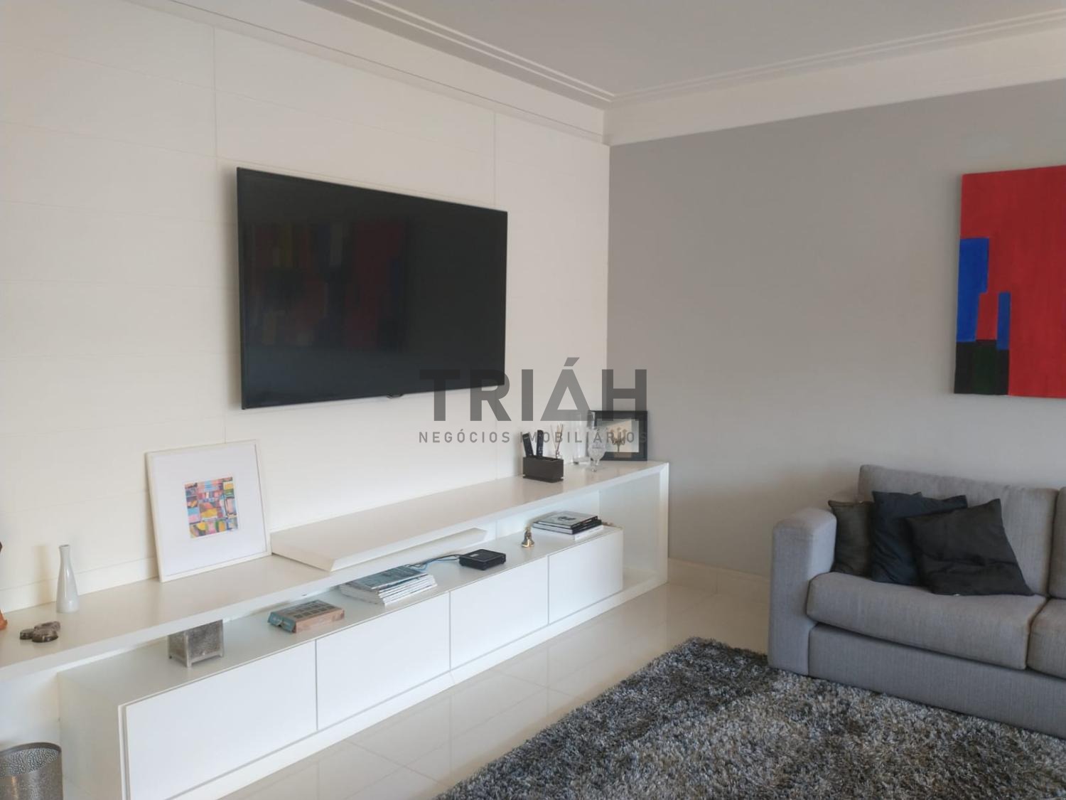 Sala de Tv, sala de estar e sala de jantar interligadas com a varanda gourmet com churrasqueira.