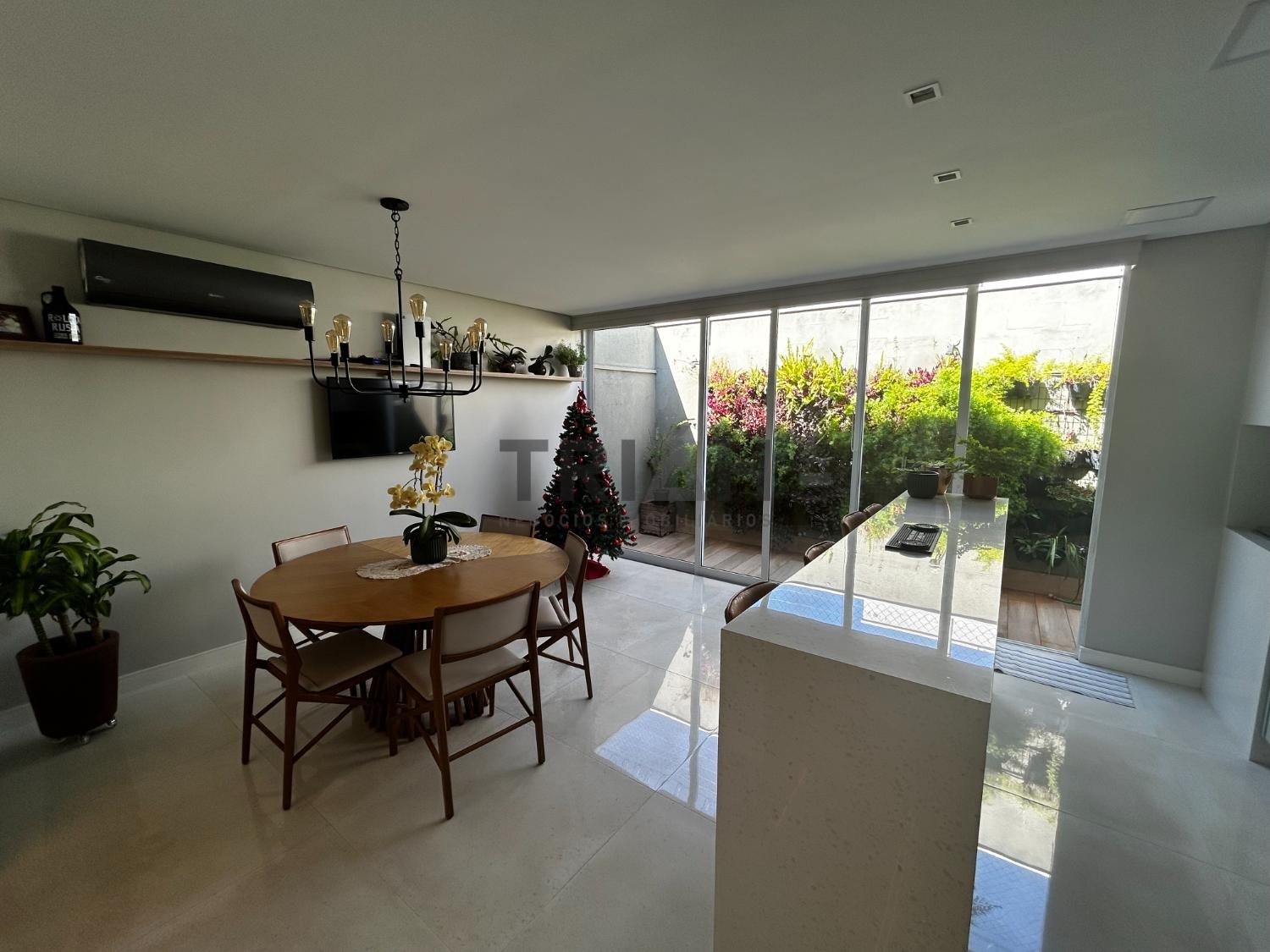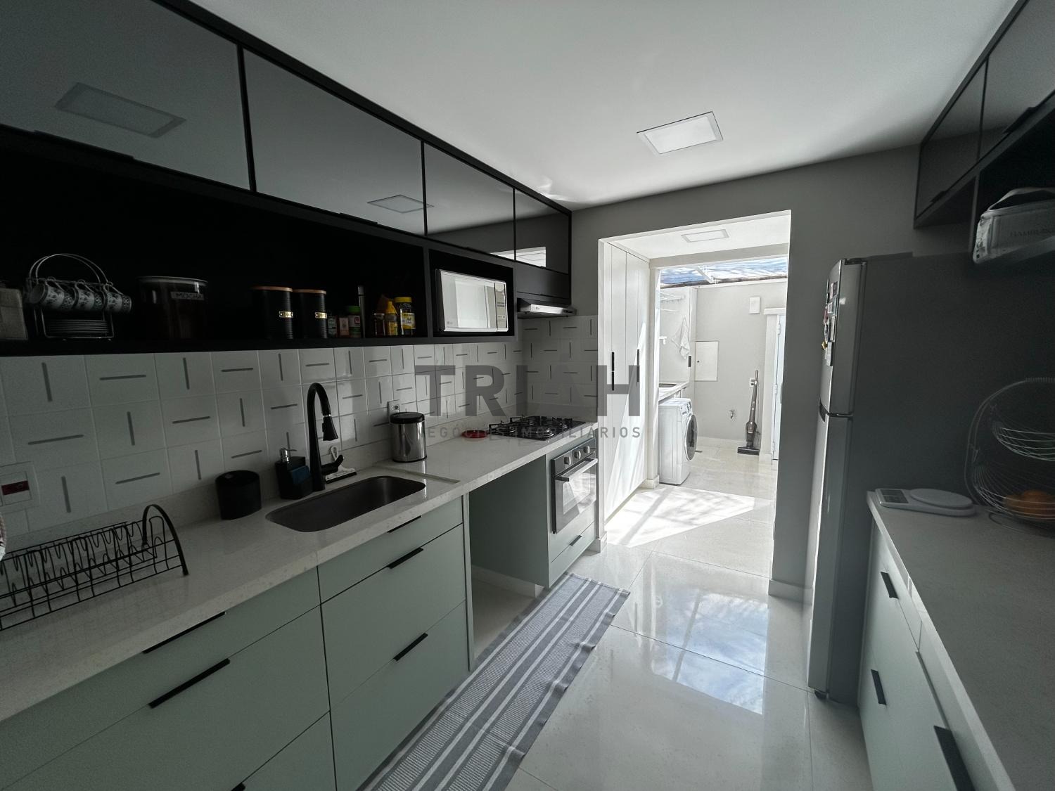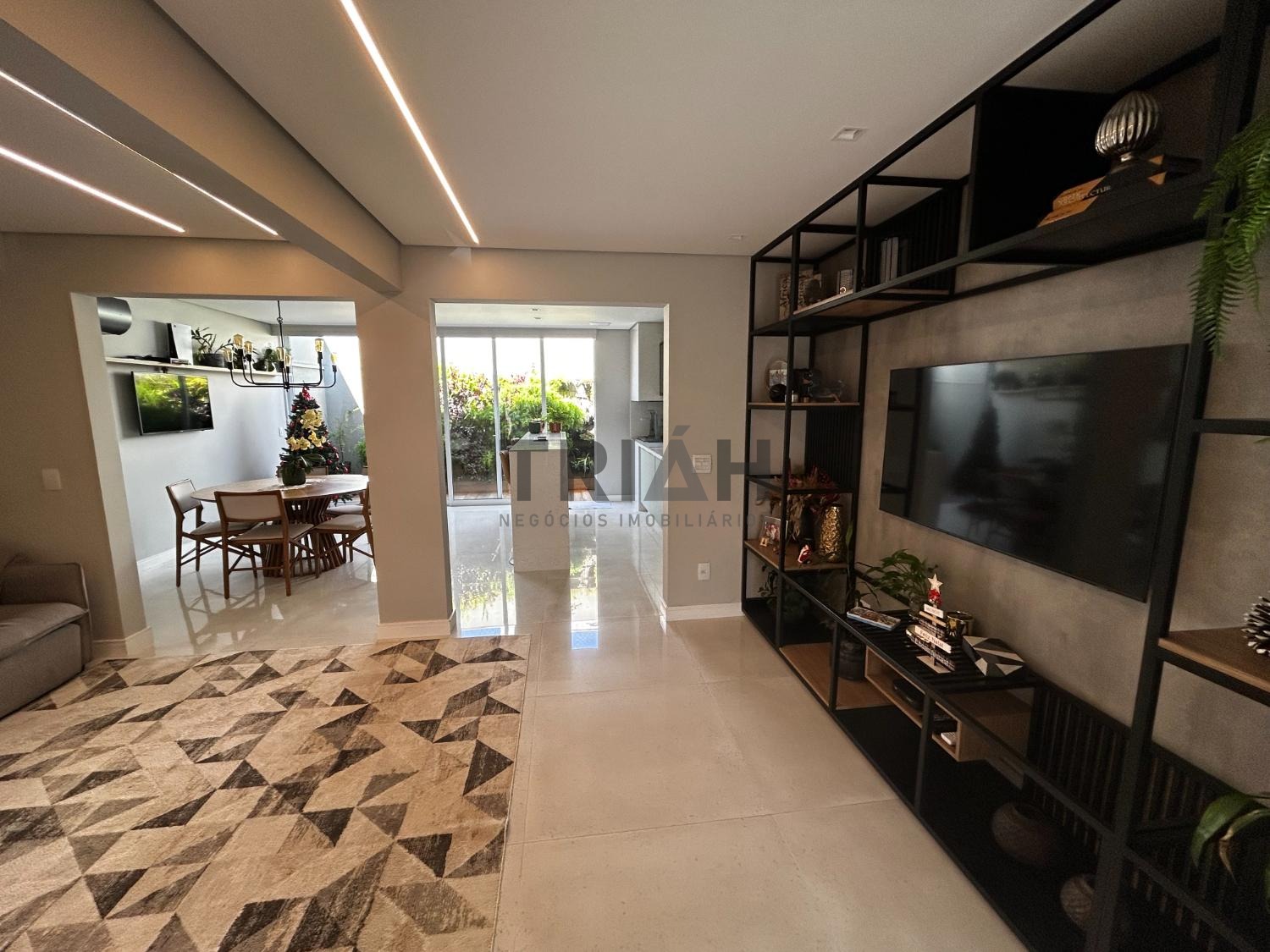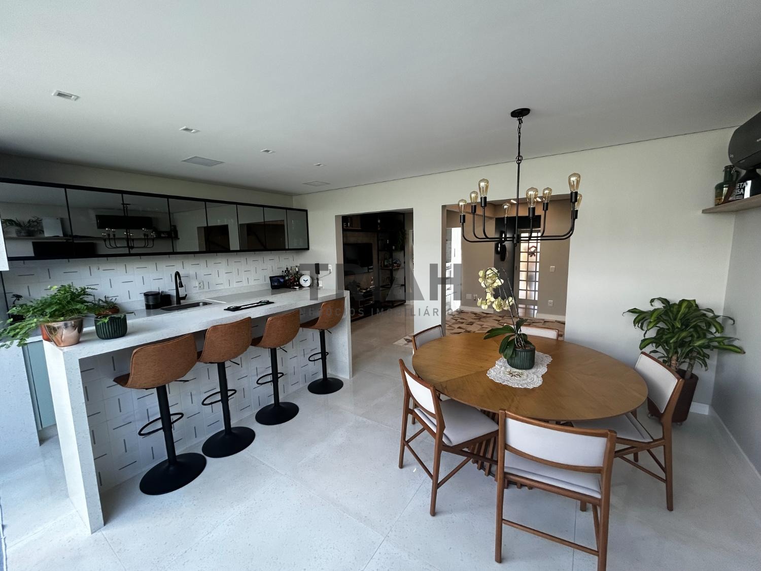 No piso inferior sala, cozinha, área gourmet e área de serviço.