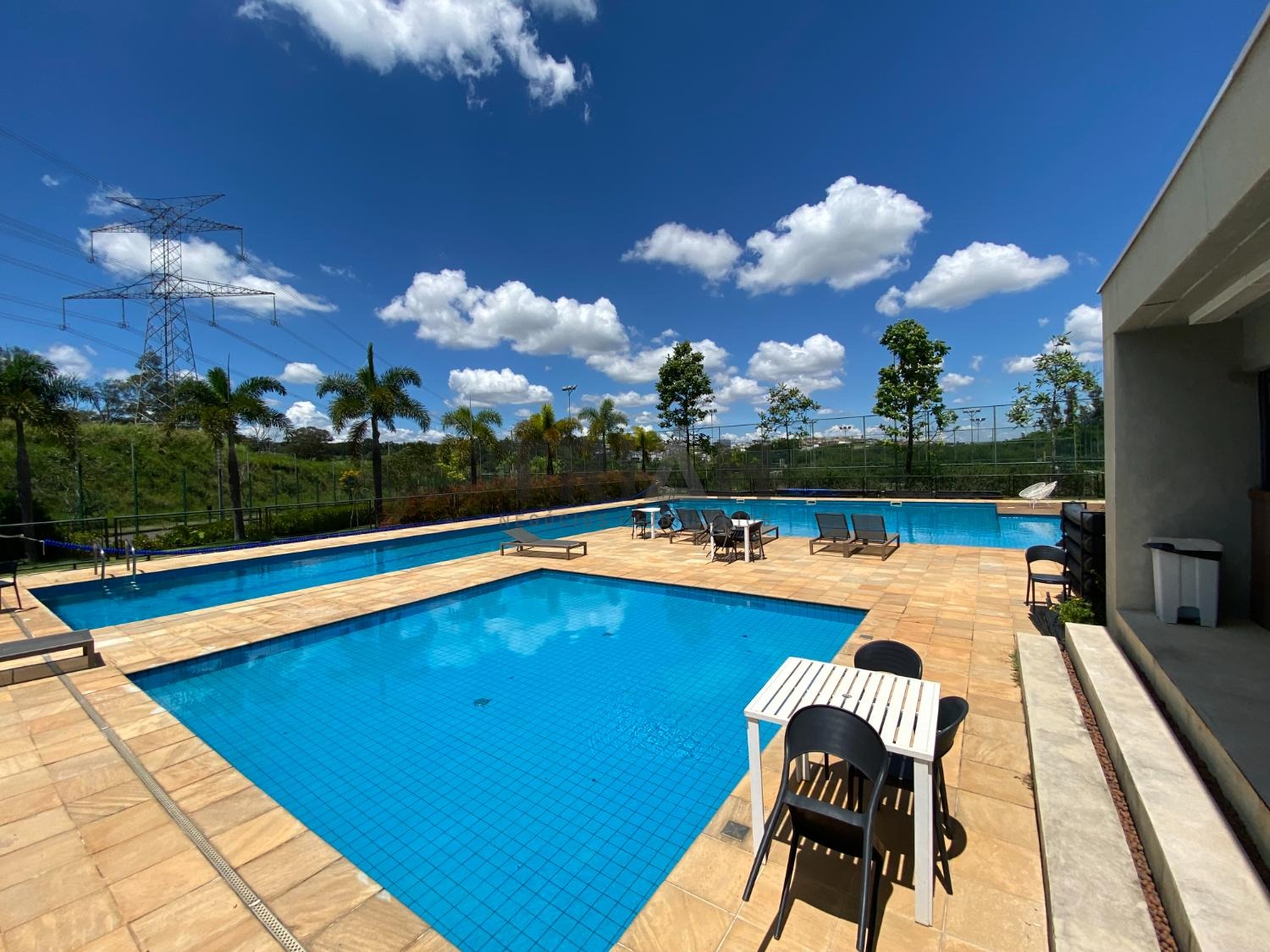 Área de lazer completa com piscinas, quadras, academia, salão de festas e muito mais.